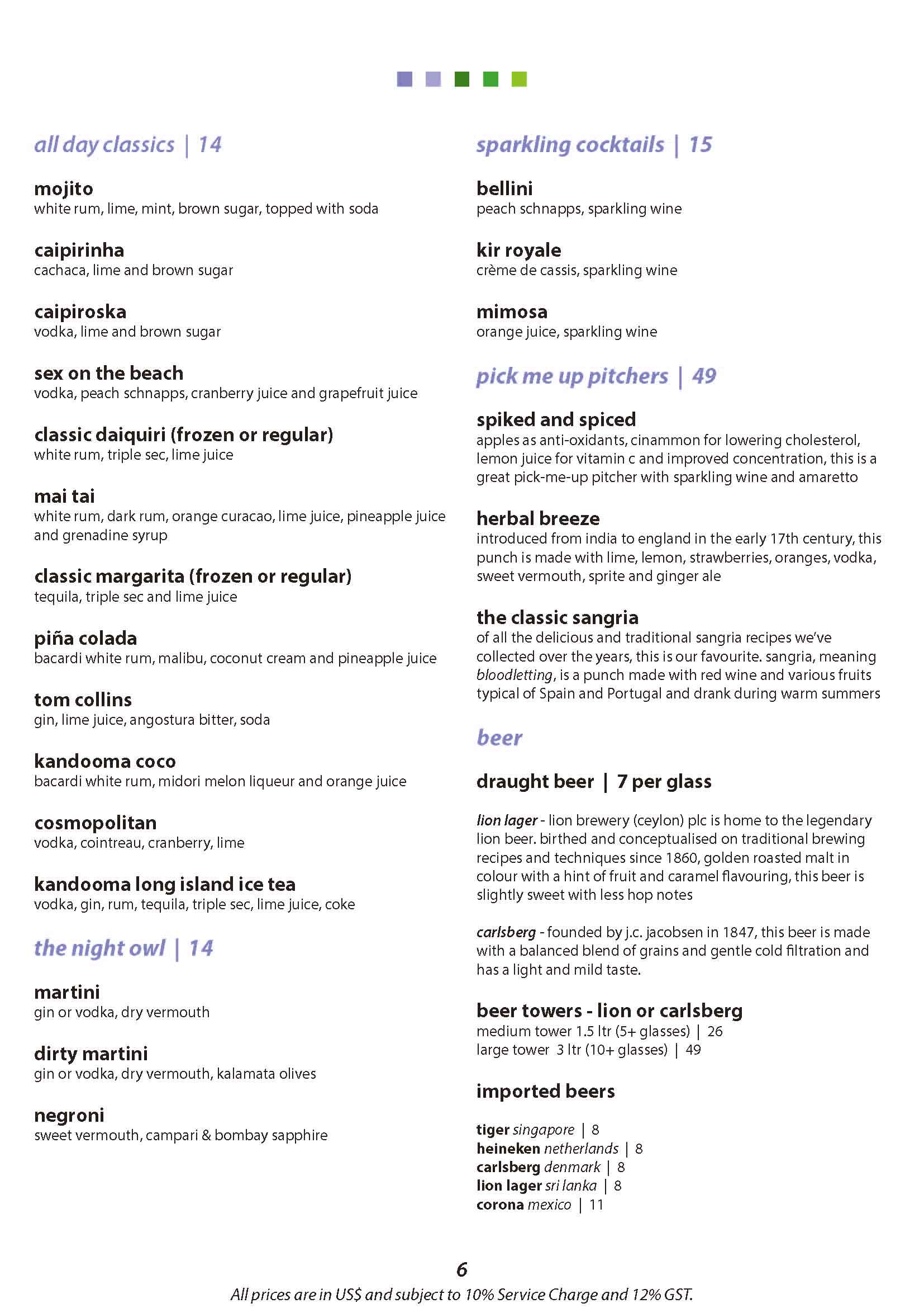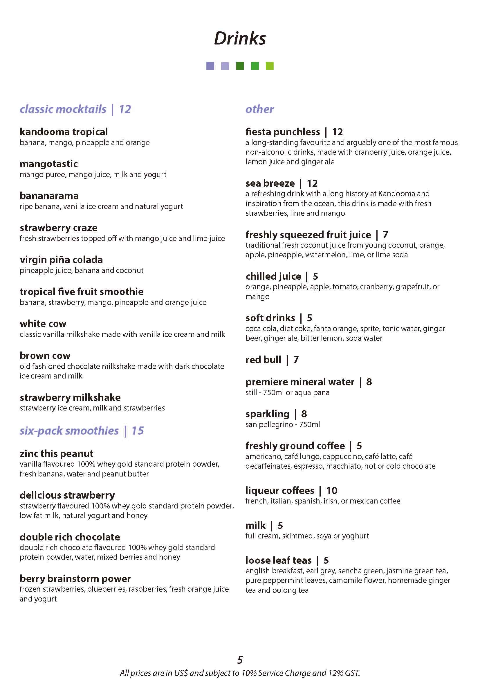 Beverage Package includes: -Feature wine, red or white served by glass. -Draught Beer -A selection of house spirits. -Selected mocktails and cocktails. -Soft drinks including chilled juices. -Kandooma mineral water. -Beverages served available between 11.00 am till 12.00 midnight in Kandooma Cafe, Bokkuraa Coffee Club, Lobby Lounge, BARavelli Bar and The Deck.