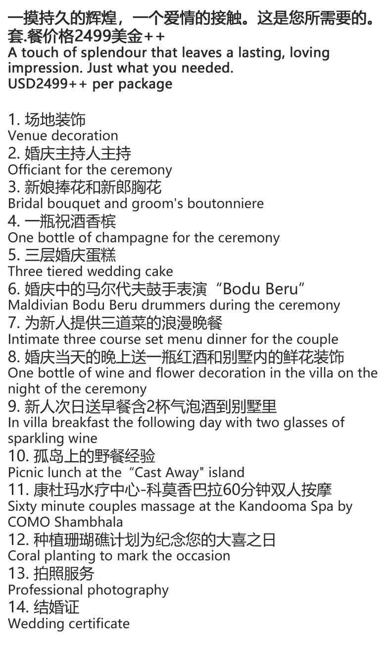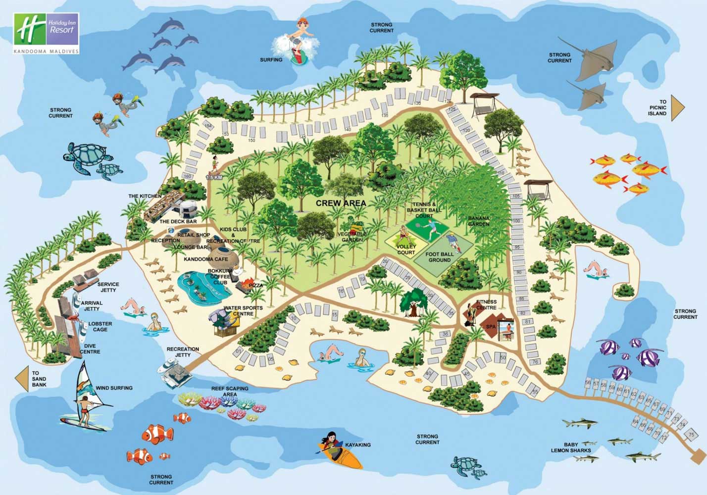 康杜玛岛属于假日酒店集团,位于马尔代夫南马累环礁,距离机场岛35公里,乘坐快艇约40分钟到达。康杜玛的名字源于岛上独有的康都树,寓意祥和美满。她因细软的白沙、湛蓝的天空、茂密的热带植物, 绿松石般的海水,以及美丽的珊瑚环礁而闻名于世界,也因将国际化、时尚化与马尔代夫本土的建筑风格巧妙融合,让您能够完全体验一个时尚与自然完全结合的马尔代夫。此外,康杜玛的料理大师精选食材,烹制出美味的本土特色菜,加上传统的服务理念定会让您胃口大开,心情舒畅。康杜玛岛上娱乐设施、活动项目丰富多彩,你可以自由浮潜、潜水,可以参加精心为您设计的活动,也可以体验惊心动魄的冲浪,或是参加愉快的篝火晚会,亦或是享受一次浪漫黄昏垂钓之旅等等。玩累了,SPA 会将宁静、放松注入您的身体,使您身心愉悦。对于儿童来说,康都玛儿童俱乐部为他们创造了一个充满欢乐的童话世界,孩子的创造性、想象力得以充分发挥,让您的孩子在参与中快乐学习。