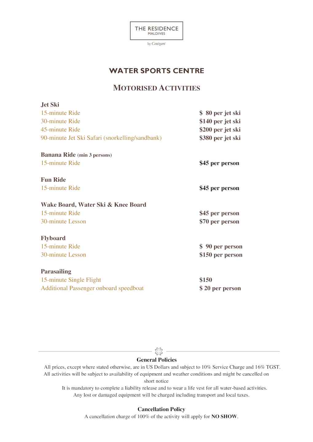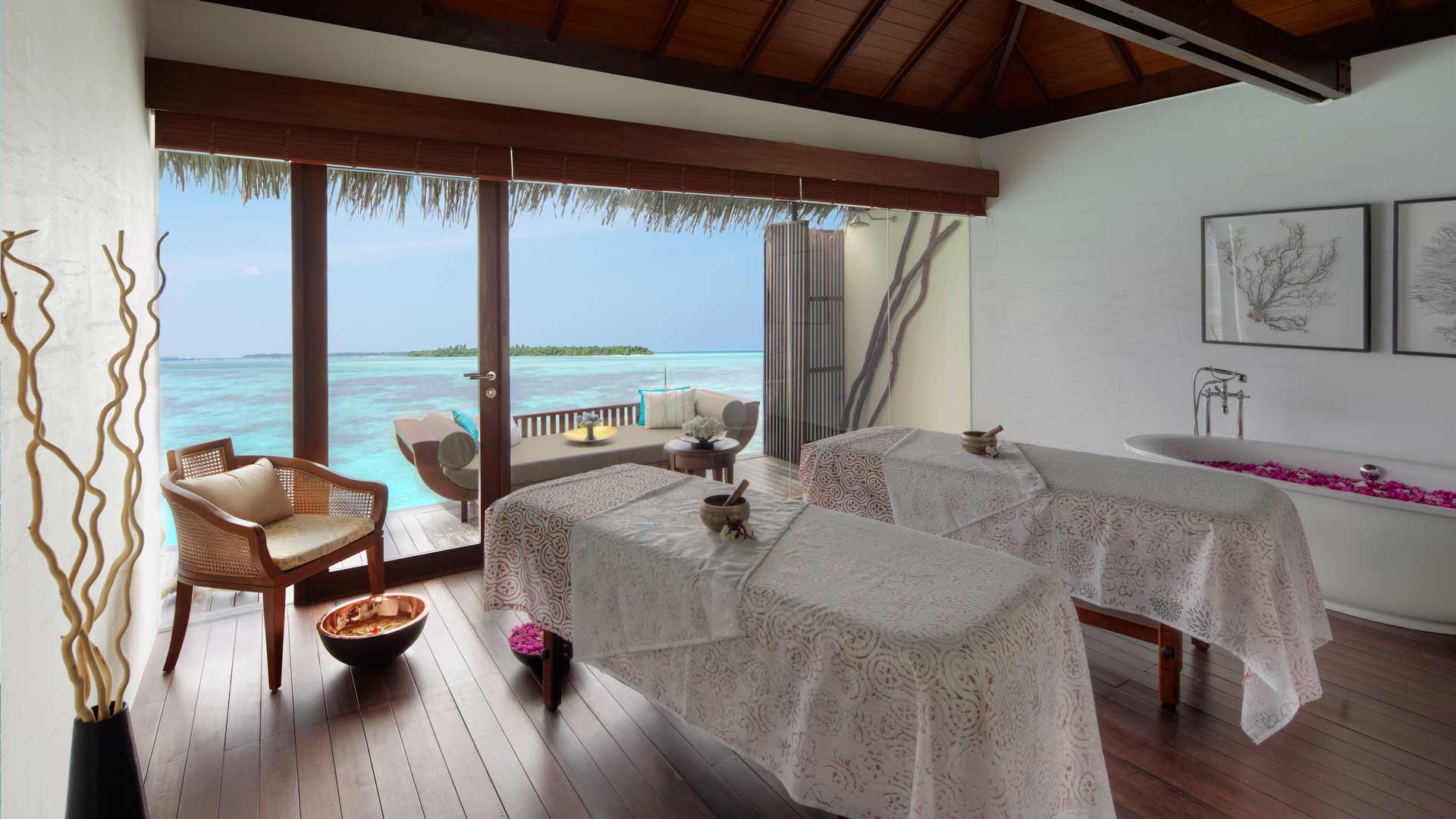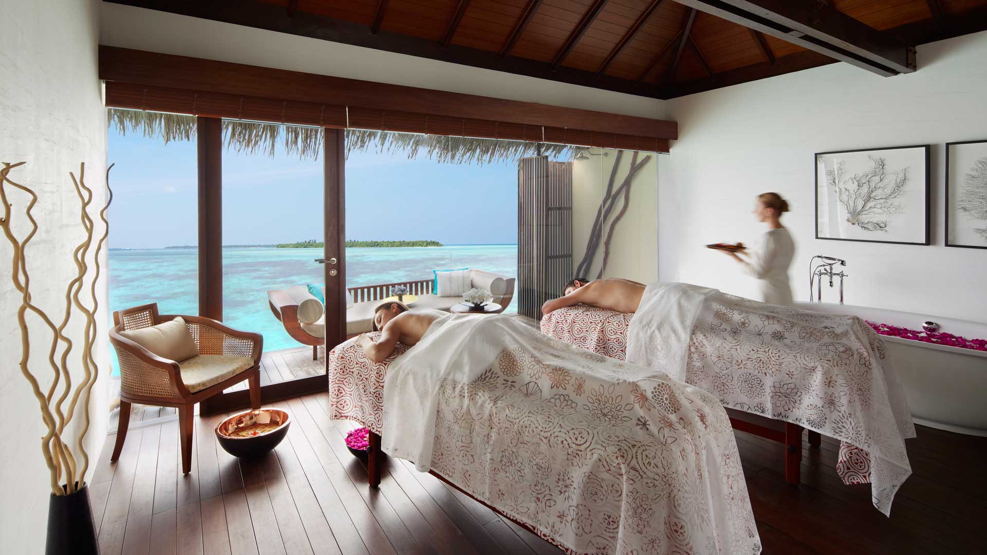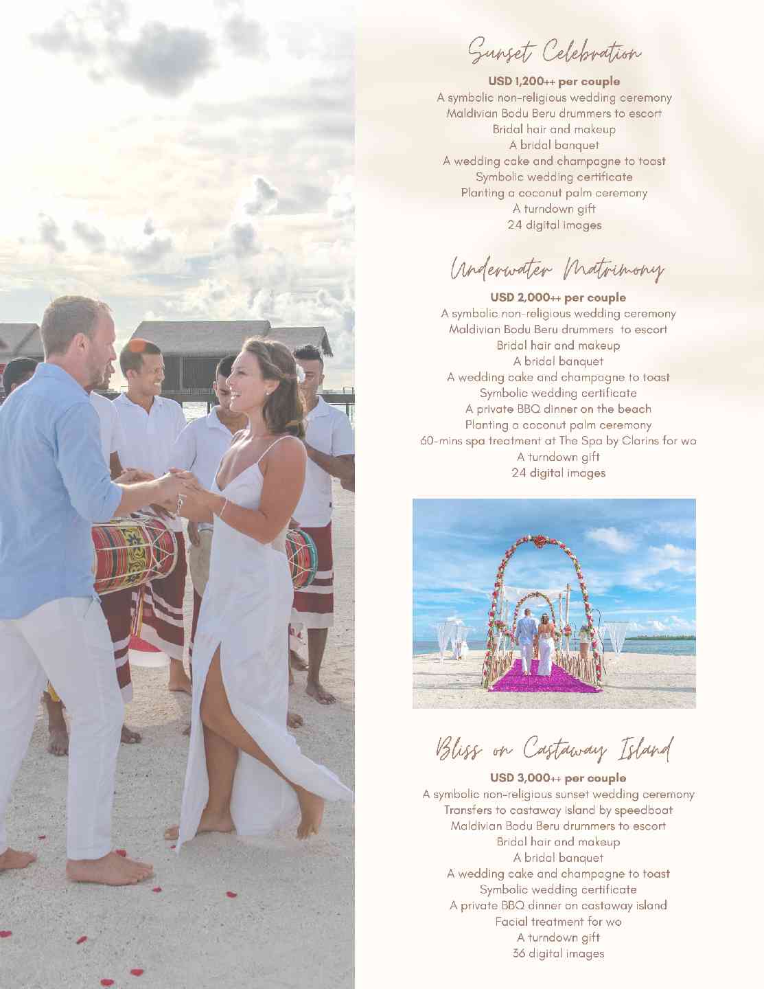 -潜水中心的免费导游房礁浮潜游览活动(每周三次,需预订) -在娇韵诗SPA中心免费日出和日落瑜伽课 -入住4晚及以上,在入住期间赠送每人90分钟日落海豚巡游一次(需预订且受限于天气情况,无现金价值和替代活动)