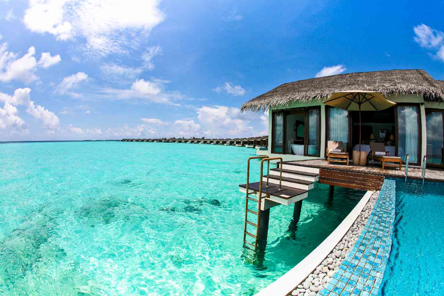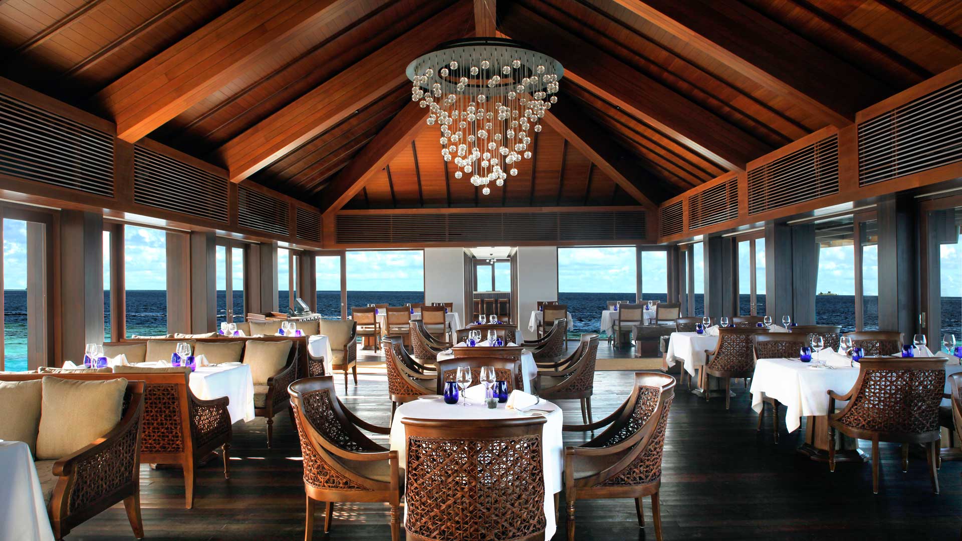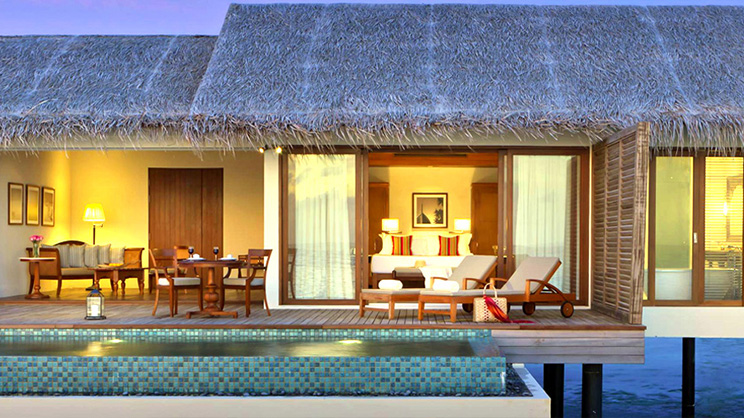 立鼎集团旗下的The RESIDENCE在世界各地都有酒店或者度假村,它的品牌和服务是肯定有保证的,共有94座私人别墅,其雅致的室内设计与传统马尔代夫建筑风格完美融合,风格时尚而不失典雅,悦心悦目。具有浓郁地方特色的工艺品、艺术墙与酒店定制的家具相辅相成,互为点缀,高高的屋顶,玻璃落地门,使得别墅通风采光性极好。这座纯净天然的小岛位于世界上最大及最深的环礁卡夫阿里夫环礁(Gaafu Alifu Atoll)之中,瑞喜敦的沙滩一级棒,观景效果最好的地方是沙滩酒吧,酒店设施和服务都很好,有中文服务。总之瑞喜敦是值得一去、宁静致远的一个岛。