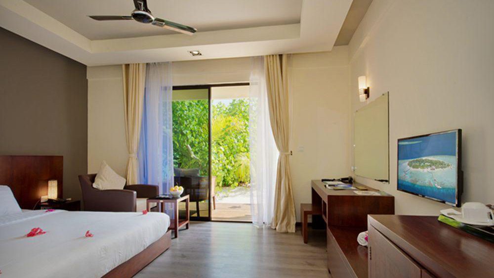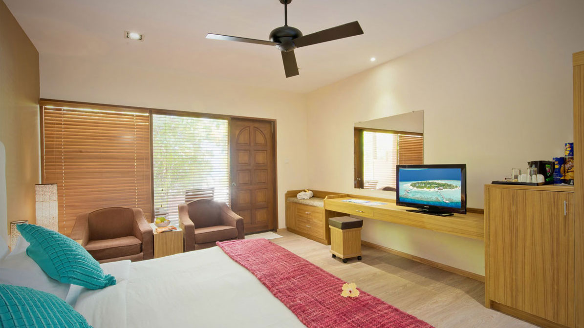酒店以典型的马尔代夫风格建造,对客房的装饰十分考究,每间设施齐全的客房都配备有液晶电视机。除此之外,配备有吹风机的浴室是您消除一天疲劳的好地方。闲暇时间在酒店的咖啡厅喝上一杯,是您休憩放松的好选择。