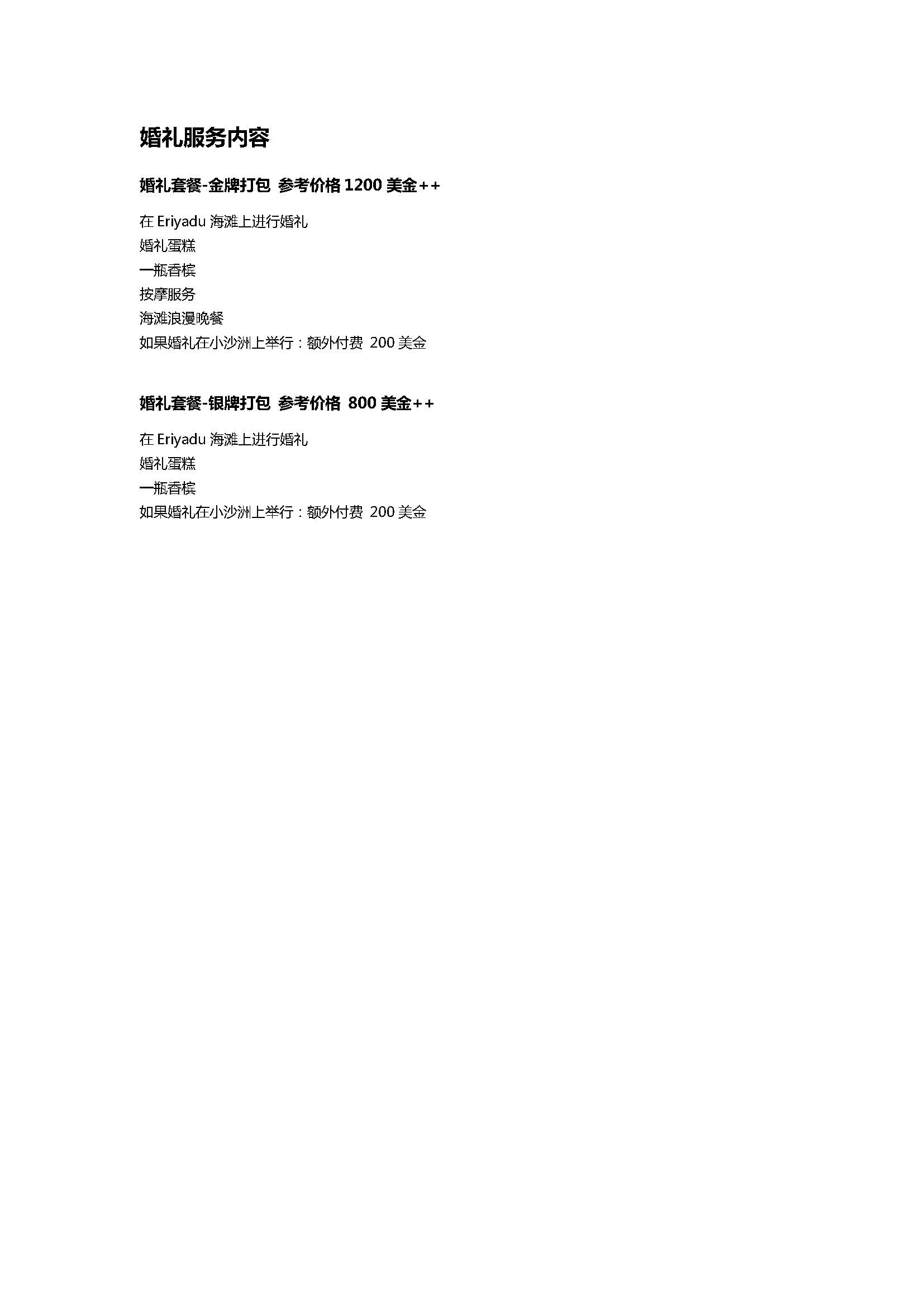 入住期间享一次三道式沙滩浪漫晚餐
