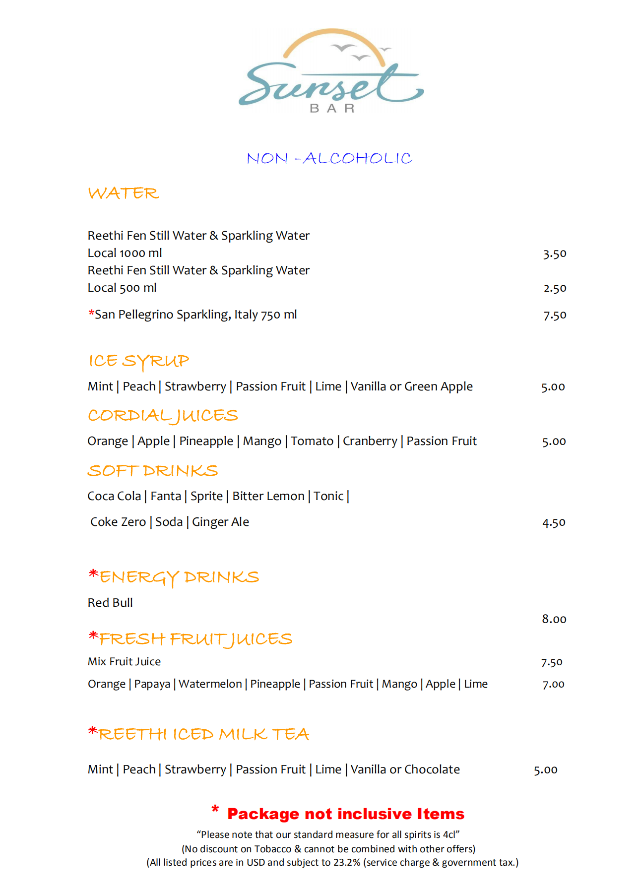 -下午茶(16:00-17:30)Dhiyavaru餐吧供应各类精选饮料
