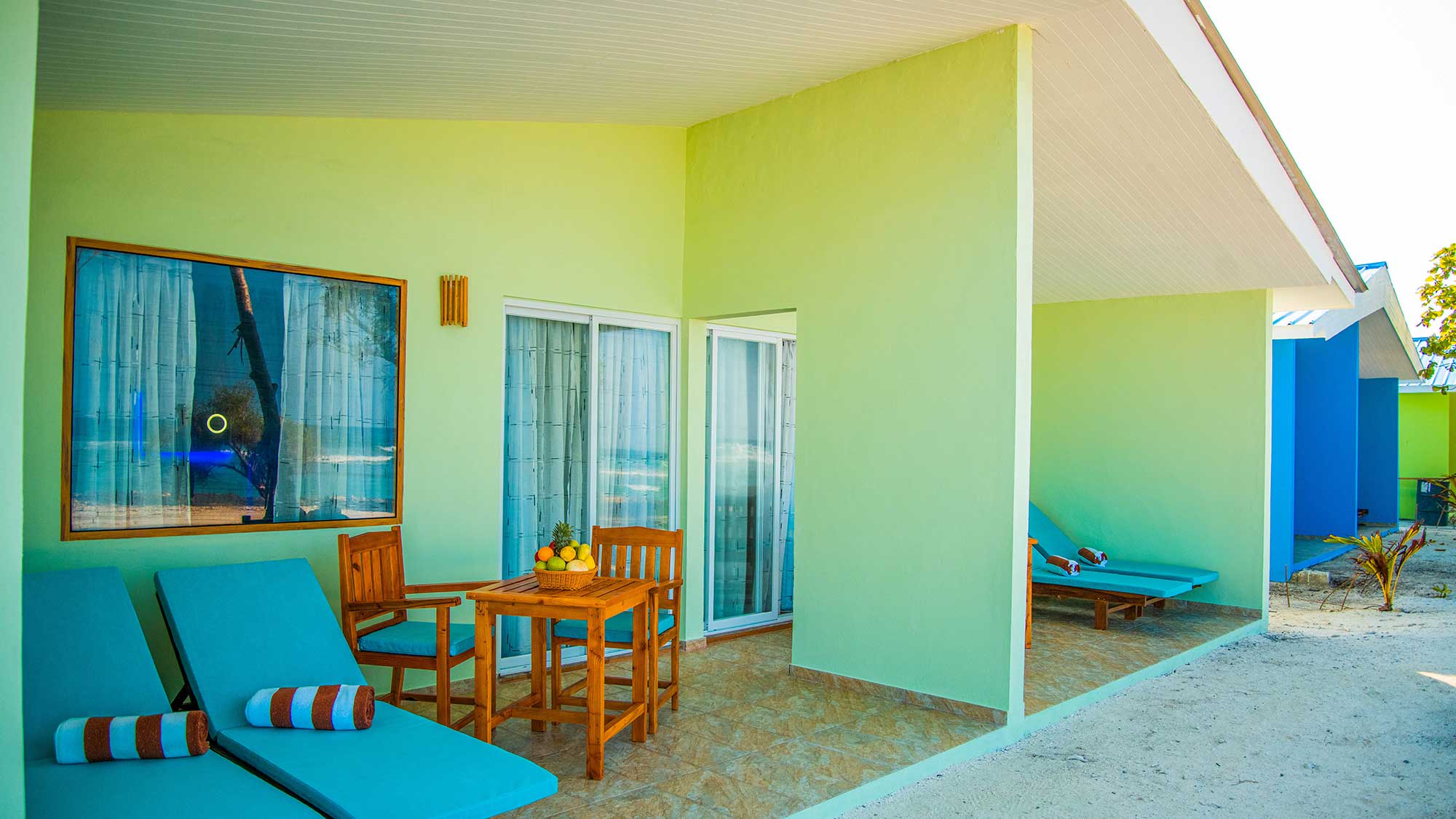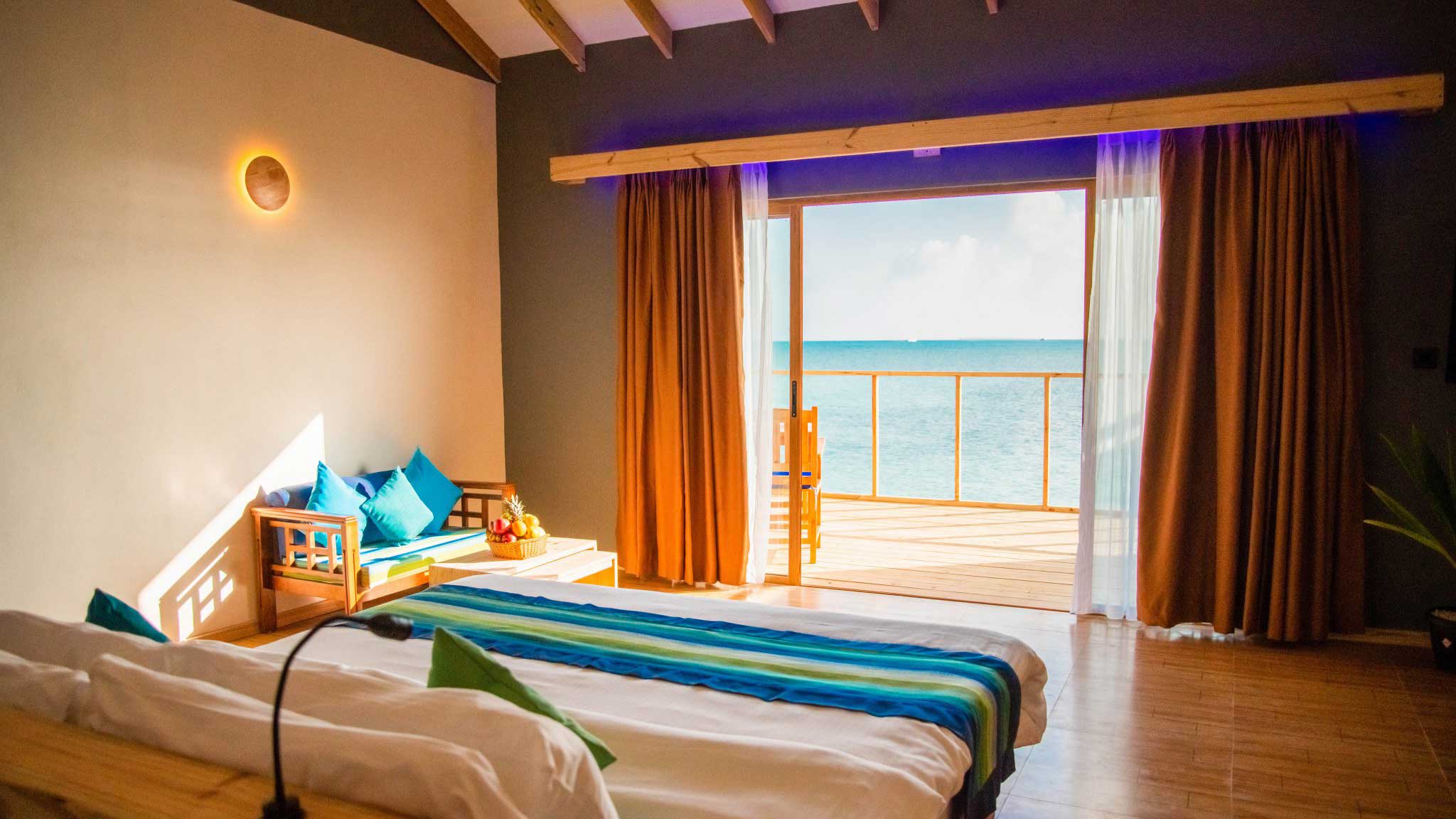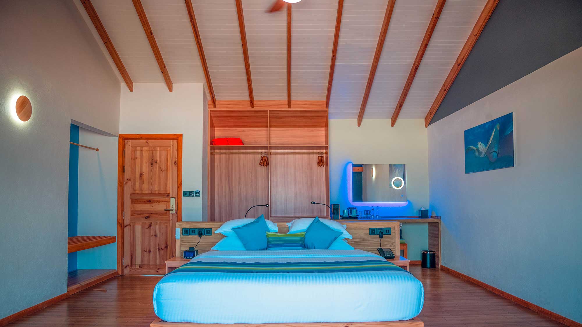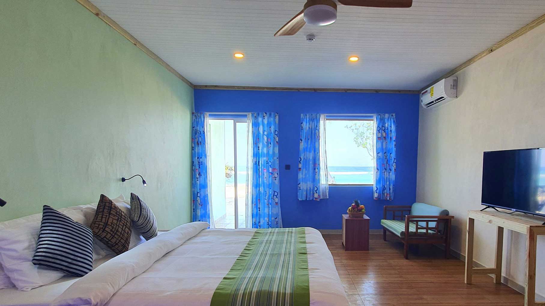 四周环绕着白色的沙滩和清澈的泻湖,享有阿杜环礁宁静的蓝色海景。