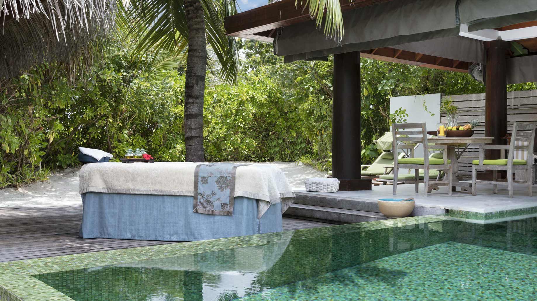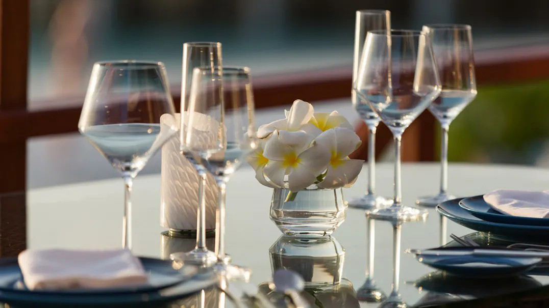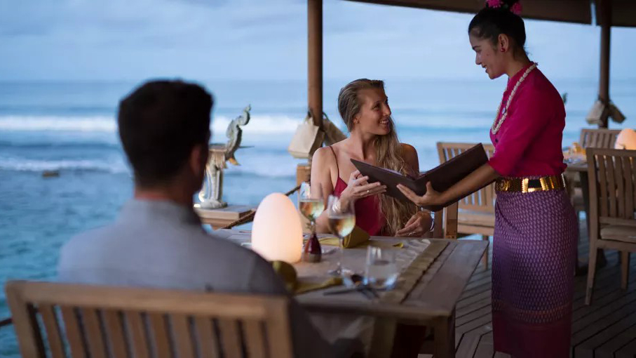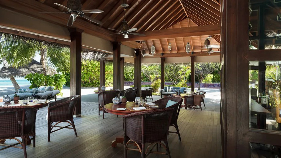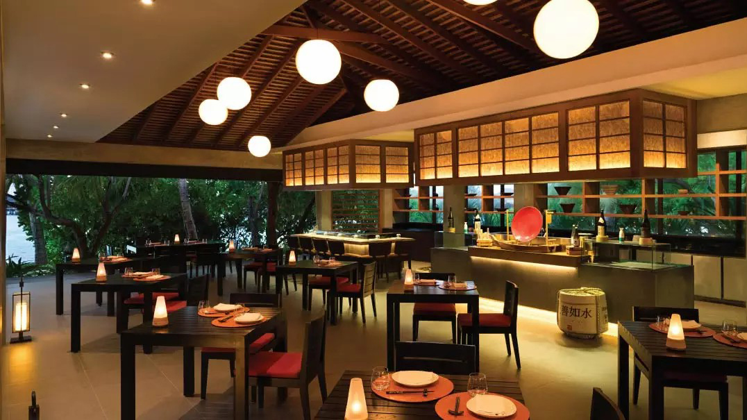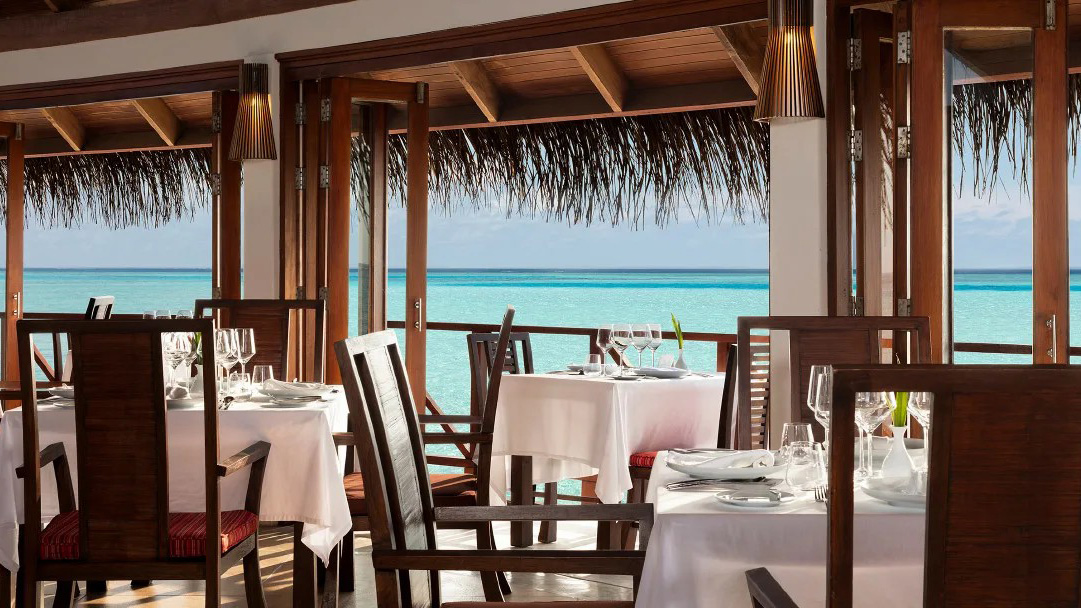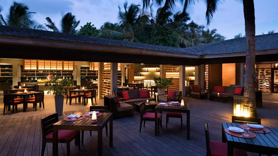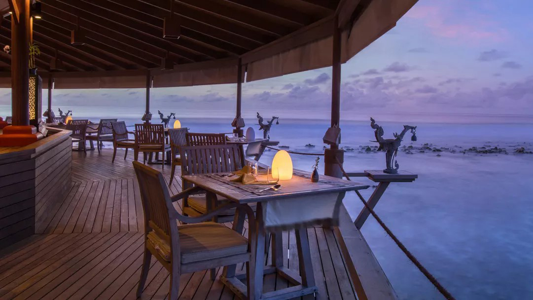 马尔代夫最好的餐厅之一,沿着泻湖上的木桥进入一个传统的高脚柚木屋,夕阳的余晖洒满屋内,四处一片金黄。可选择泰国各地的美味佳肴 – 来自东北部的各种酸辣沙拉、南方的香辣椰子咖喱、中部地区的菜肴以及芳香四溢的茉莉香米饭。