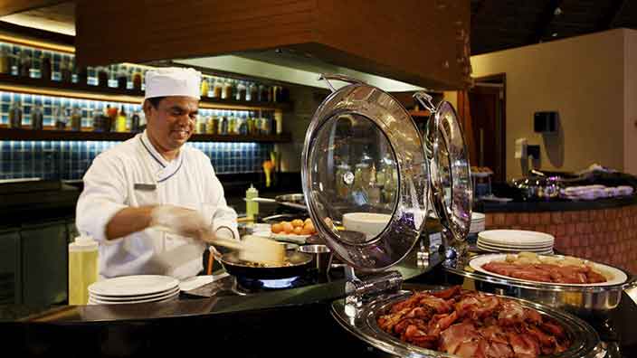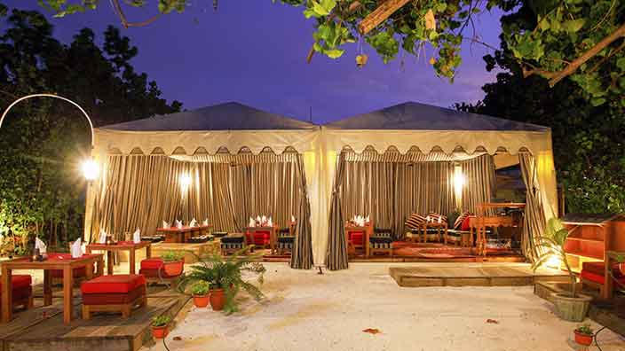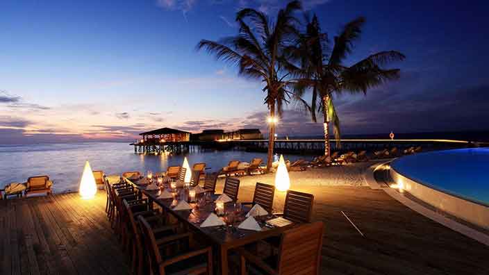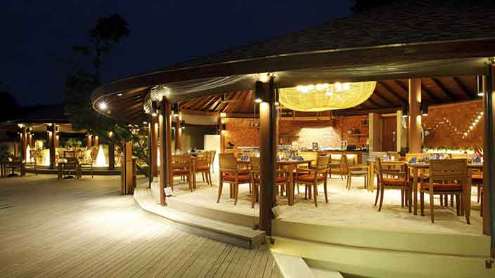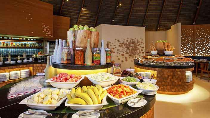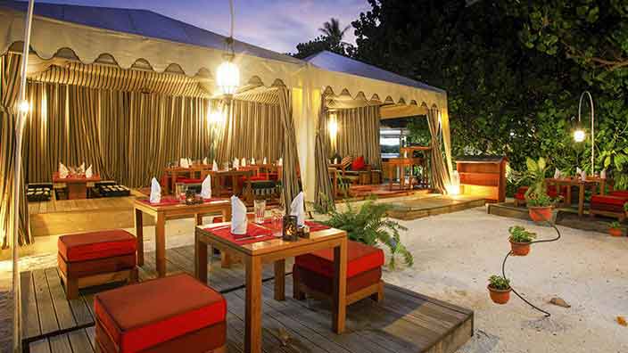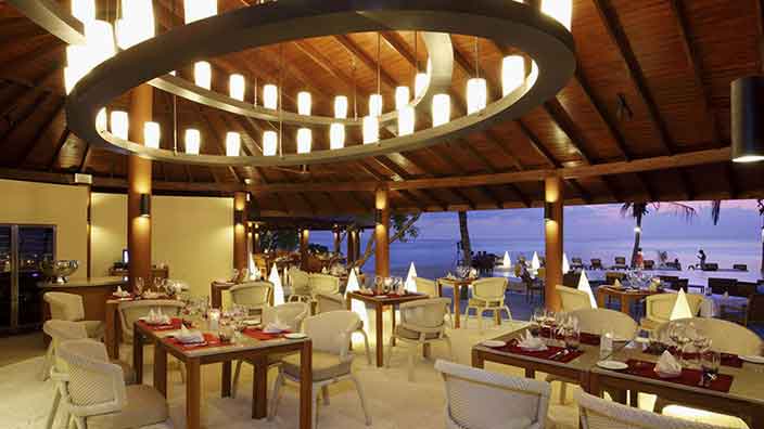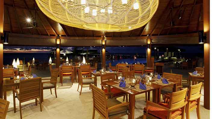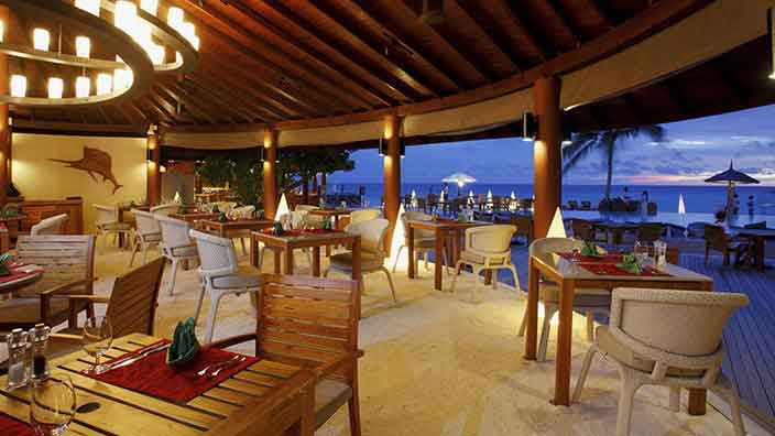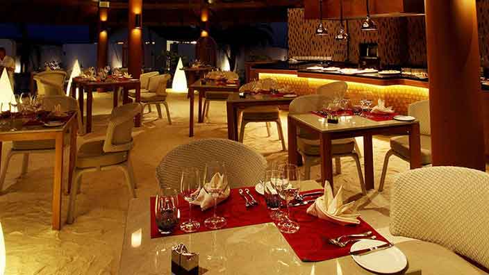 Oceans 餐厅,在别具现代装饰风格的餐厅里,赤脚走在用沙堆成的地面上,让您享受独特的用餐经验。每天更换菜单,包括:亚洲、欧洲、中东以及南美洲的美食;明火烤肉,以及现场烘烤的披萨,既美味又新鲜。